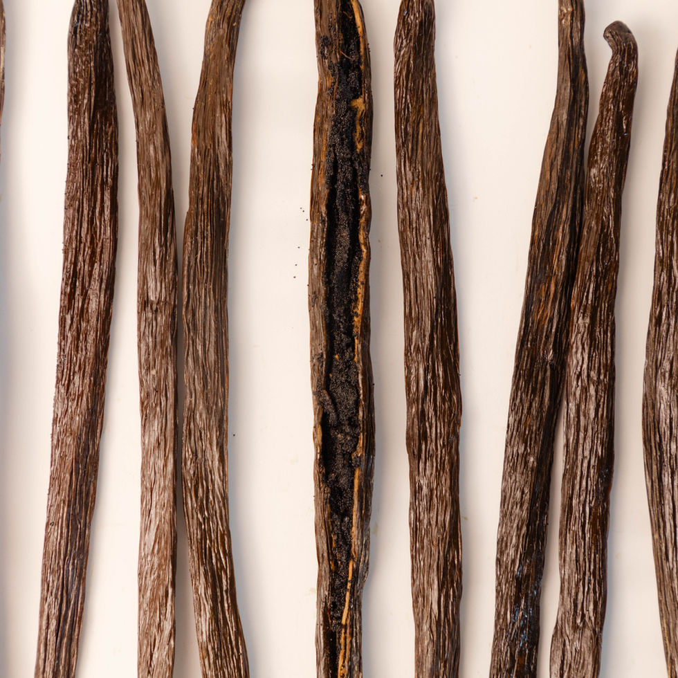 Premium Grade A vanilla beans from Veracruz fills the air with a warm, inviting aroma—creamy and sweet, layered with soft spice and delicate floral notes.